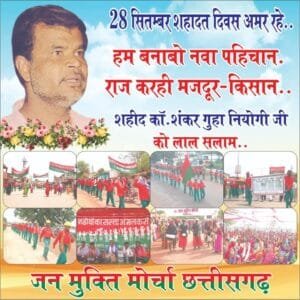 ने कहा की मजदूरों की व्यवस्था और सम्मानजनक जिने लायक वेतन के लिए कामरेड शंकर गुहा नियोगी ने मजदूरों के बीच में रहकर पिछले 30 सालों से उनके हक और अधिकार के लिए लड़ाई लड़ा l कामरेड ने शहीद वीर नारायण सिंह को छत्तीसगढ़ के पटल में रखकर उनके द्वारा चलाये गए किसान आंदोलन को लेकर काफी जोर शोर से अभियान चलाया और उनके बीच में किसानों को खड़ा किया l सबसे महत्वपूर्ण बात यह था की वे जिस क्षेत्र में रहकर कार्य कर रहे थे और उन्हें अपने कार्यस्थल को बनाया वह आदिवासी और पिछड़ा हुआ क्षेत्र था l शहीद वीर नारायण सिंह को रायपुर के जय स्तंभ चौक पर अंग्रेजों ने फांसी दिया था l उस समय के सरकारों ने उनके जन सेवा को दबाने की कोशिश किया था l इसलिए कामरेड शंकर गुहा नियोगी ने उसे सबके सामने लाकर उनके हक और अधिकार के लिए लड़ाई लड़ा l संघर्ष और निर्माण का प्रेरणा लेकर शहीद अस्पताल का निर्माण किया और गांव के किसानों की जमीन को सामंती व्यवस्था से छुड़ाने का प्रयास किया l