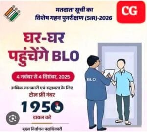 👉7. भारत निर्वाचन आयोग द्वारा जारी प्रेस विज्ञप्ति के अनुसार 4 नवम्बर 2025 से प्रारम्भ विशेष गहन पुनरीक्षण (SIR) के अंतर्गत घर-घर मतदाता सत्यापन अभियान नागरिकों से सहयोग की अपील गई है ।