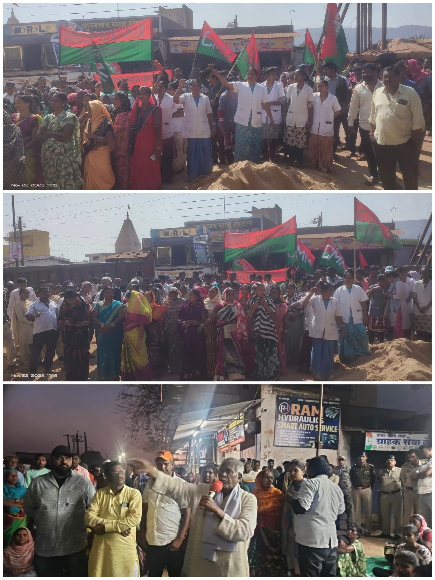 👉 नगर पालिका अध्यक्ष तोरण लाल साहू एवं वार्ड पार्षद मालती निषाद अरुणा रामटेके तरुण साहू ने दिया आंदोलन को समर्थन ।