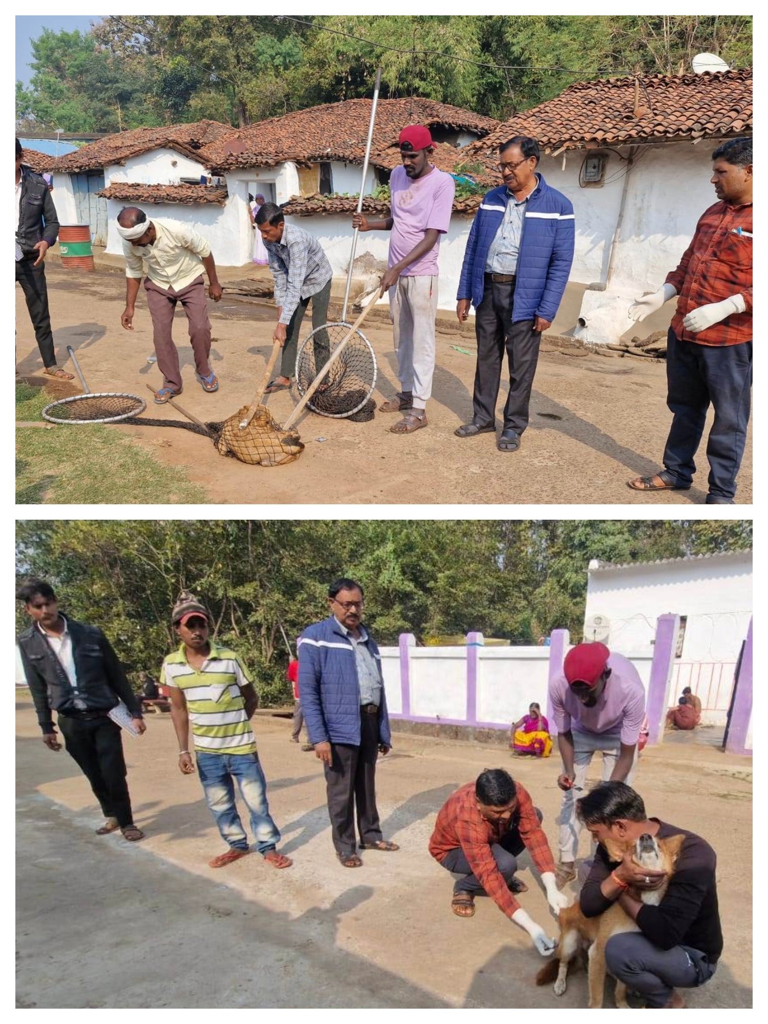 दल्ली राजहरा में चलाया जा रहा आवारा कुत्तों का टीकाकरण अभियान।