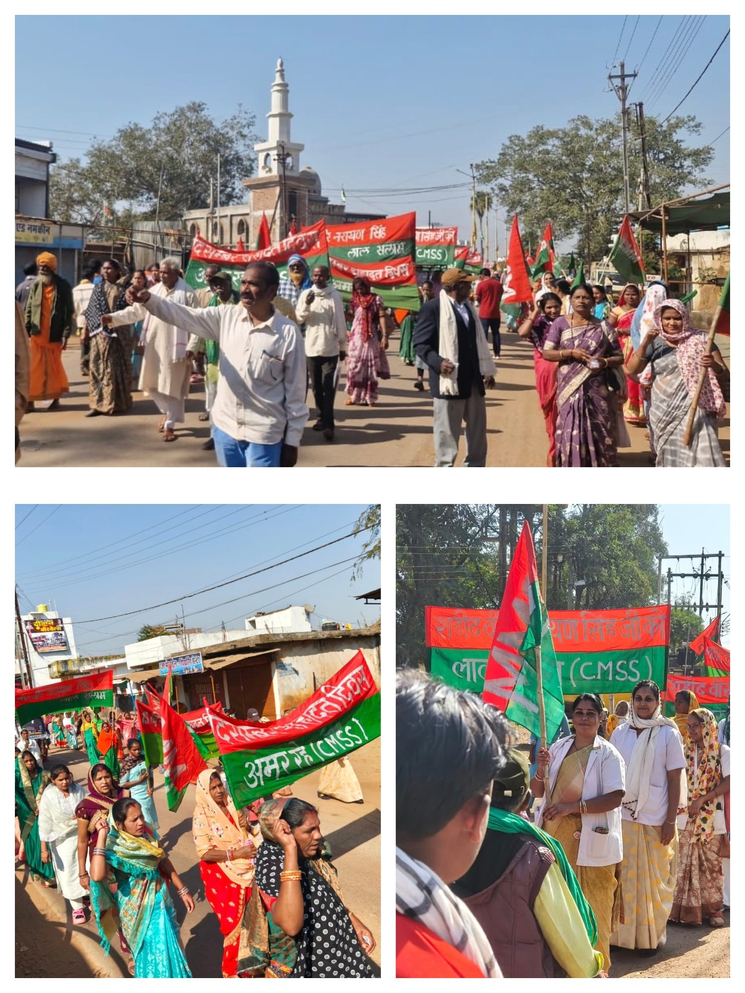 छत्तीसगढ़ माइंस श्रमिक संघ के अध्यक्ष सोमनाथ उइके आज के शहादत दिवस पर सभी ने अपनी बात कहा दिया, आज हम किसान मजदूर सभी लड़ने को तैयार है, 2014 में जब सरकार सत्ता में आई तो सरकार ने संविधान को बदलने की बात कही, मतलब साफ है सरकार हमारा हक और अधिकारों को छीनना चाह रही है, देश के मजदूरों का पहचान लाल हरा रंग है,जब किसानो ने कृषि बिल विधेयक का विरोध दिल्ली में विरोध कर महीने तक डटे रहे , तो क्या छत्तीसगढ़ का किसान कमजोर है जो अपने अधिकारों के लिए सरकार से लड़ नहीं पाएंगे,आज छत्तीसगढ़ में अदि वासी मुख्य मंत्री होने पर भी खदानों और कोल माइंस स्थापित करने के लिए जल जंगल जमीन को उजाड़ रहे है, रायगढ़ में जब जिंदल कंपनी ने जबरदस्ती ऑनलाइन में धोखा करके सरकार ने किसानो की जमीन जिंदल को बेच दिया था जब लोगो को मालूम हुआ कि, उनका जमीन बिक गया है, बस्तर क्षेत्र में आदिवासी के जमीनों को बेचा जा रहा है, सरकार की ये जमीन को हथियाने का तरीका जिससे बड़े बड़े उद्योग पतियों को हमारा जमीन बेच दे रही है ।