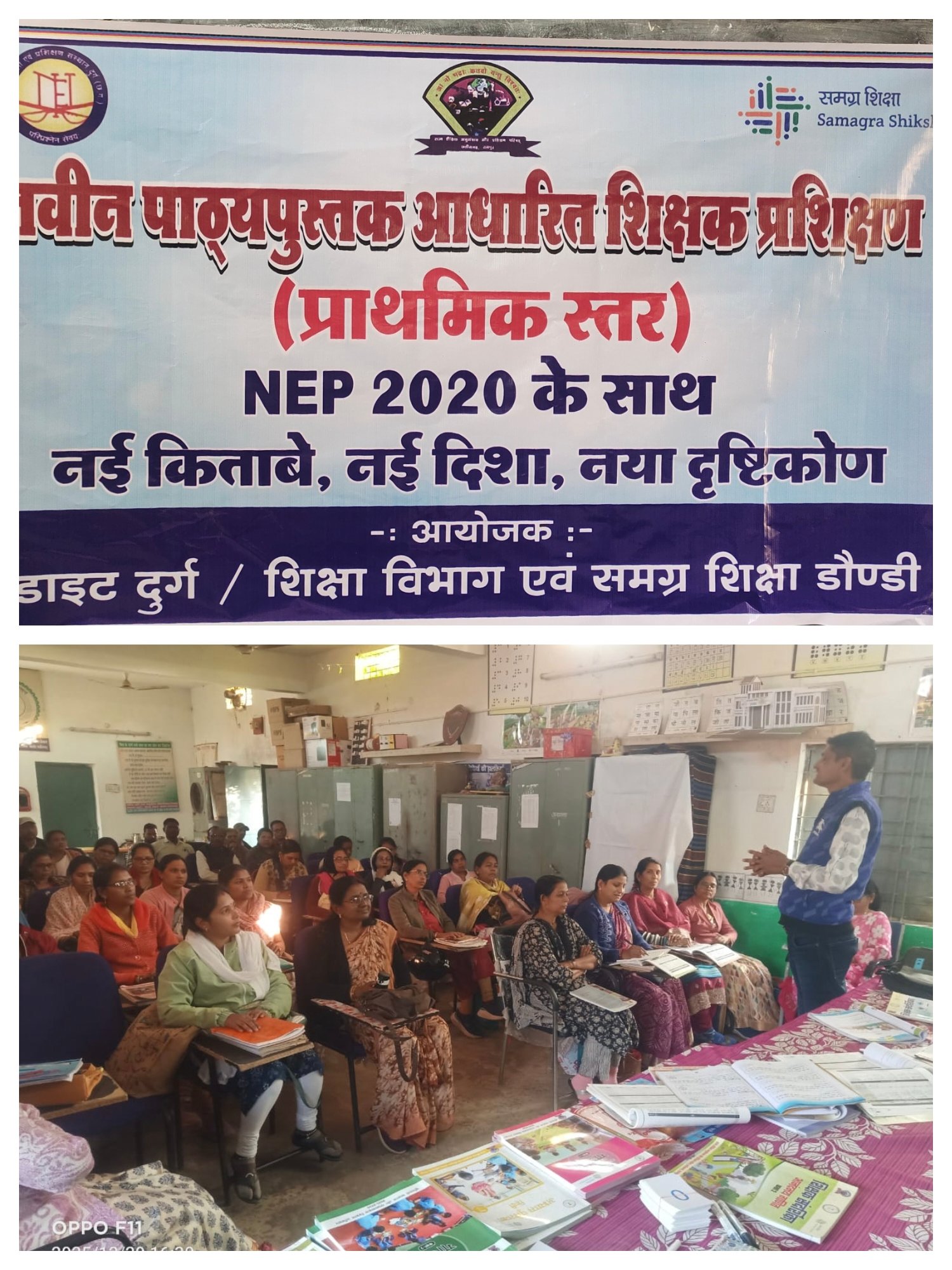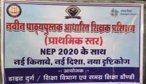 प्रशिक्षण में- राष्ट्रीय शिक्षा नीति 2020 को आधार मानकर नवीन पाठ्यपुस्तक डिजाइन किया गया है। जिसमें शिक्षकों की बेहतर समझ के लिए एफ एल एन द्वारा शिक्षक संदर्शिका -अभ्यास पुस्तिका-पाठ्यपुस्तक का कुशलता पूर्वक समायोजन करते हुए चार खण्डीय रूप रेखा आधारित विभिन्न टीएलएम सामग्रियों से बच्चो में कक्षा स्तर के आधार पर दक्षता लाने का प्रयास किया जा रहा है।