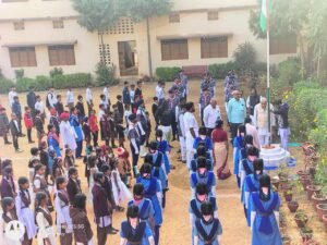 सरस्वती शिशु मंदिर दल्ली राजहरा में मुख्य अतिथि समाजसेवी क्रांति जैन ने किया ध्वजारोहण ।
