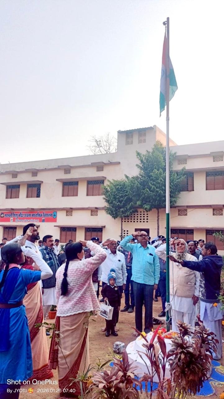 दिनांक 26 जनवरी 2026 को सरस्वती शिशु मंदिर उच्चतर माध्यमिक विद्यालय दल्ली राजहरा में 77 वाँ गणतंत्र दिवस हर्षोल्लास के साथ मनाया गया। इस कार्यक्रम में अतिथियों का स्वागत विद्यालय की स्काउट गाइड टीम द्वारा किया गया। कार्यक्रम का शुभारंभ हमारे देश की राष्ट्रीय ध्वज तिरंगे के समक्ष पूजन-अर्चन कर ध्वज फहराने के साथ किया गया। जिसके पश्चात परम पवित्र ओम, मां भारती एवं ज्ञान की देवी मां सरस्वती के छायाचित्रों के समक्ष दीप प्रज्वलन कर एवं भारत माता की आरती के साथ कार्यक्रम का शुभारंभ किया गया।