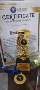 ब्लू स्टार पब्लिकेशन कंपनी ( BSP) नई दिल्ली ने लौह नगरी दल्ली राजहरा की नंदिनी बेहरा को ” भारत कवि रत्न अवार्ड 2025 से सम्मानित किया है ।