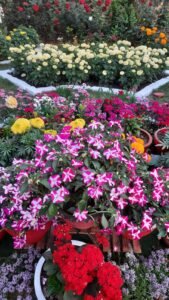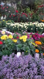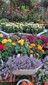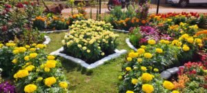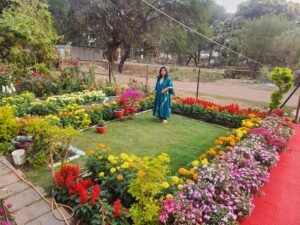पिटुनिया ,पैंसी,बरबीना,इम्पेशन,कैलेन्डुला,गेंदा, डहलिया,स्टाक, सेवंती, साल्विया, डाक फ्लावर ,ग्लैडियस ,झीनिया , गुलाब, बोगनबेलिया, गुड़हल अडेनियम, जरबेरा,कैलेन्चु,फ्लाक्स अलार्म जैसे देसी और विदेशी फूलो से अपने गार्डन को बहुत ही खुबसुरती से सजाया।