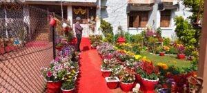 500 से अधिक गमलो मे लगे फूल बेहद सुन्दर नजर आ रहे है। बेहतर लाॅन और स्टार फ्रूट के पौधे मन को ललचा देता है।
