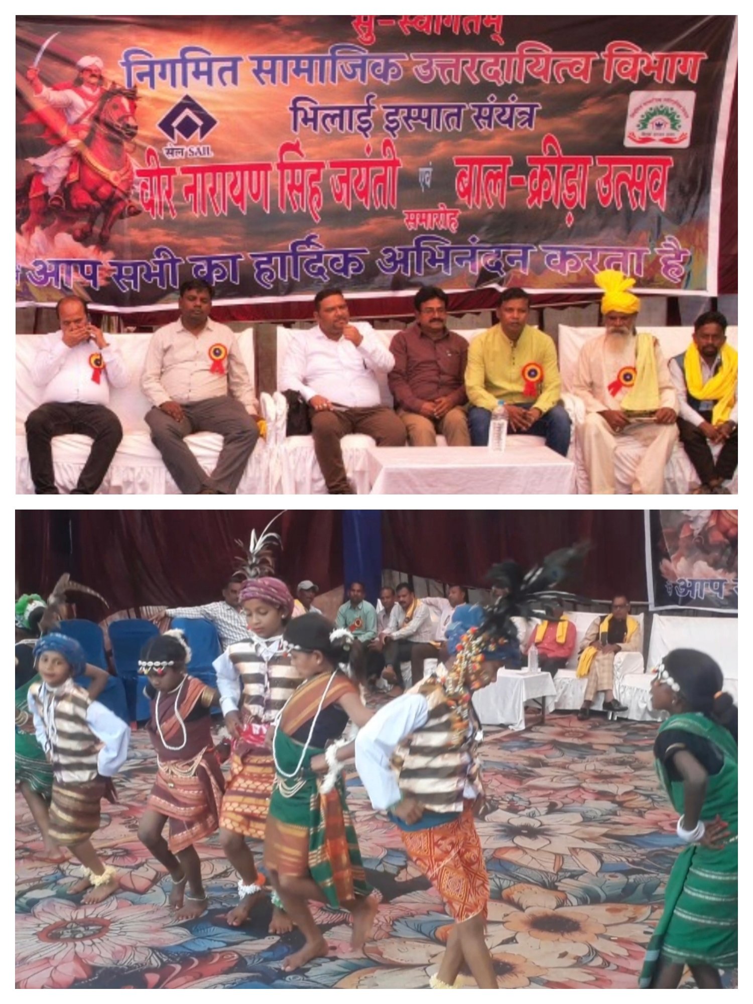 इस समारोह के मुख्य अतिथि दुलकी खदान के खान प्रबंधक मनीष जायसवाल, विशेष अतिथि रमेश हेडऊ , वरिष्ठ प्रबंधक नितेश क्षत्रिय, वरिष्ठ प्रबंधक राकेश ठाकुर सी.एस.आर. भिलाई इस्पात संयंत्र के उपप्रबंधक कमलकांत वर्मा उपस्थित रहे । कार्यक्रम का शुभारंभ शीतला माता एवं ग्राम देवताओं के पूजा अर्चना कर किया गया ।