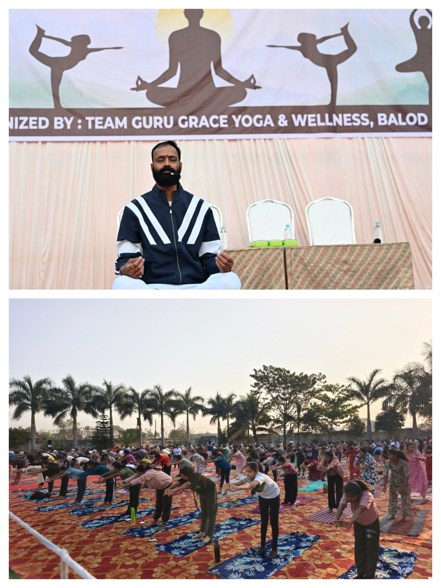 गुरु प्रेस योग एंड वैलनेस टीम व ज़िला प्रशासन बालोद के सहयोग से संचालित जुंबा एवं योग के अद्भुत मिश्रण का कार्यक्रम “स्व AWAKE” का उद्घाटन दिवस काफी उत्साहवर्धक रहा। प्रथम दिवस में ही करीब 1000 बालोद वासियो ने एक साथ योग कर कार्यक्रम को ऐतिहासिक बना दिया। प्रातः 5:00 बजे से टीम गुरु ग्रेस योगा एंड वैलनेस महादेव भवन के योगाभ्यास स्थल पर पहुंच कर व्यवस्था को अंतिम रूप दिया। लगभग 6:00 बजे तक योग स्थल पर 800 से अधिक लोगों की उपस्थिति “प्रवेश-पास” के माध्यम से हो चुकी थी जो कुछ समय पश्चात 1000 तक पहुंच गई।