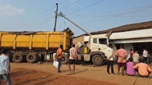 आज का घटनाक्रम इस प्रकार से है कि तेज रफ्तार ट्राला क्रमांक CG 22 X 5339 का 18 चक्का ट्राला तेज रफ्तार से रायपुर की ओर जा रहा था इसी समय ग्राम पथरा टोला के पास रजही की ओर जाने वाली सड़क से आगे पूर्व माध्यमिक शाला के सामने से 11के बी पोल को टक्कर मारते हुए भादु राम कोसमा के दुकान में जाकर घुस गया । ड्राइवर  अरविंद कुमार ने बताया कि झपकी आ जाने के कारण उपरोक्त घटना घटी है ।