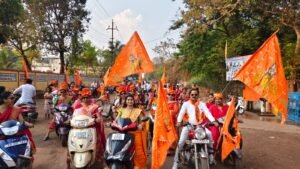 बाइक रैली माइन्स ऑफिस चौक होते हुए शहीद वीर नारायण सिंह चौक पुराना बाजार से चिखला कसा पहुंची।जहां से नगर पंचायत चिखला कसा होते हुए कार्यक्रम स्थल श्री राम मंदिर परिसर के पास पहुंची ।