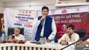 ने अपने उद्बोधन में कहा कि टीवी मुक्त भारत की कल्पना तभी हम साकर कर सकते हैं ।जब इस बीमारी से सभी एकजुट होकर लड़े । कोई व्यक्ति टीवी से ग्रसित होता है तो उससे मित्र की तरह व्यवहार करें । उनके परिवार को सहयोग करें , उन्हें इलाज के लिए प्रेरित करें । तब हम टीवी मुक्त भारत की कल्पना को साकार कर सकते हैं । हम सभी व्यक्ति के शरीर में विभिन्न प्रकार के वायरस हमेशा भी विद्यमान रहते हैं लेकिन इनका प्रभाव तभी बढ़ता है जब हमारा शरीर का रोग प्रतिरोधक क्षमता शरीर में कम हो जाता है । जैसे ही रोग प्रतिरोधक क्षमता की कमी होती है यह वाइरस हमारे विभिन्न अंगों को नुकसान पहुंचाना चालू कर देते हैं । टीवी के लक्षण के बारे में प्रमुख रूप से तो आप सभी को जानकारी मिल ही चुकी है लेकिन सबसे ज्यादा जोखिम उन लोगों के होता है जो व्यक्ति कुपोषित होते हैं उनकी उम्र 60 वर्ष से अधिक होती है जो अधिकतर शराब या धूम्रपान का सेवन करते हैं मधुमेह की बीमारी से एचआईवी से ग्रसित होते हैं या टीवी रोगों से मरीज से लगातार संपर्क में रहते हैं । या फिर पूर्व में टीवी की बीमारी से ग्रसित हो चुके होते हैं और दवाई बंद कर चुके होते हैं । इसके लिए बेहतर है आप पोषण आहर ले । सही समय पर इलाज कराते रहें और जब तक डॉक्टर ना कहे अपनी मर्जी से स्वस्थ होने के बाद भी दवाई का सेवन बंद ना करें ।