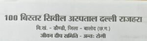 दल्ली राजहरा की एकमात्र शासकीय 100 बिस्तर अस्पताल के संबंध में कई शिकायत मिली थी जिस पर नगर के पत्रकार गण अस्पताल का निरीक्षण करने पहुंचे थे । वहां की स्थिति जैसे लोगों के द्वारा बताई जा रही थी उसके अनुरूप ही देखने को मिला । अस्पताल में मात्र एक संविदा डॉक्टर एक शासकीय नर्स 3 एन एम ए नर्स और दो वार्ड बॉय और दो स्वीपर के भरोसे संचालित हो रही है । अस्पताल का समय सुबह 8:00 बजे से रात्रि 8:00 बजे तक है । लेकिन लोग बताते हैं कि सुबह 8:00 बजे से खुलता है और लगभग 5:00 बजे अस्पताल बंद हो जाता है । रात्रि में यदि कोई व्यक्ति बीमार पड़ जाए तब उन्हें निजी अस्पतालों में जाना पड़ेगा ।
