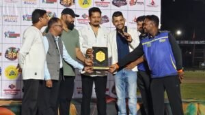 दल्ली राजहरागुरुवार 09 अप्रैल 2026भोजराम साहू 9893 765541 फाइनल मैच राजहरा प्रीमियर लीग सीजन-5 खेलबो राजहरा फाउंडेशन के तत्वाधान में आयोजित राजहरा प्रीमियर लीग सीजन _5 का बीएसपी राजहरा क्रिकेट एसोसिएशन के ग्राउंड में चल रहे 10 दिवसीय क्रिकेट महाकुंभ का कल फाइनल के साथ समापन हो गया । नगर के युवा संजय साहनी के द्वारा राजहरा एवं आसपास की क्रिकेट के प्रतिभावान खिलाड़ियों को उभारने के लिए आज से 7 वर्ष पहले खेलबो राजहरा फाउंडेशन का गठन किया गया था ।विशाल मोटवानी के संरक्षण में आयोजित यह आयोजन अपने मकसद में कामयाब साबित हुआ । कल समापन के अवसर पर सभी टीम हॉनर को सम्मानित किया गया मैच रेफरी के रूप में अमित बादल तिवारी एमडी फरीद ,शेख अनजान तथा स्कोर सूरज दास एवं हर्ष को निष्पक्ष भूमिका निभाने के लिए उन्हें सम्मानित किया गया । मैच कमेंट्री मार्तंड सिंह ठाकुर एवं अर्पित ने किया । इस मैच का प्रथम पुरस्कार एक लाख एक हजार रुपए की राशि यस टी -11 को गोविंद वाधवानी के द्वारा स्वर्गीय नानक राम वाधवानी एवं रघुनाथ जयवंते की स्मृति में दी गई । तथा द्वितीय पुरस्कार 71 हजार एक रुपए माथुर सिनेप्लेक्स आशुतोष माथुर के द्वारा दी गई जो कि सन्नी स्टार को मिला हैं ।https://hamaradallirajhara.in/wp-content/uploads/2026/04/VID-20260409-WA0116.mp4मैच प्रारंभ होने से पहले स्वर्गीय मनीष जैन एवं स्वर्गीय विजय बहादुर को श्रद्धांजलि दी गई । टॉस सन्नी स्टार ने जीता उन्होंने बैटिंग करने के लिए यस टी 11 को आमंत्रित किया। एक समय इस मैच में सन्नी स्टार ने बेहतरीन गेंदबाजी करते हुए मैच पर अपनी पूरी पकड़ बना ली थी । आठ ओवर पर एस टी 11 ने 80 रन ही बनाए थे पूरी तरह इस मैच पर सन्नी स्टार का कब्जा था ऐसा लग रहा था कि एस टी- 11 बहुत मुश्किल से 100 रन ही बना ले तो बहुत बड़ी बात होगी । लेकिन महेश के बैटिंग करने आते ही पूरे मैच का रूख ही बदल गया। मैच में ऐसी आंधी आई की सन्नी स्टार के लिए इस आंधी को रोक पाना नामुमकिन साबित हुआ । महेश ने बेहतरीन बल्लेबाजी करते हुए मात्र चार ओवर में अन्य बल्लेबाजों के साथ मिलकर 92 रन बनाकर इस मैच में अपने टीम के लिए विशाल 172 रन का स्कोर खड़ा किया । मैदान के चारों तरफ सिर्फ चौके और छक्के की बरसात हो रही थी । महेश ने इस मैच में 23 बॉल पर एक चौके और 15 छक्के की मदद से 95 रन बनाएं साथ ही उनके द्वारा निर्धारित तीन ओवर में 19 रन देकर दो विकेट भी हासिल किया। इस हरफन मौला प्रदर्शन को मैन ऑफ द मैच से सम्मानित किया गया ।https://hamaradallirajhara.in/wp-content/uploads/2026/04/VID-20260409-WA0113.mp4यस टी 11 की ओर से बल्लेबाजी योगेंद्र साहू 11 बॉल पर एक छक्के की मदद से नौ रन जीतू गंजीर 12 बॉल पर पांच छक्के की मदद से 31 रन आदित्य गोलानी एक रन मुराद एक रन उदय एक रन महेश कुमार 23 बॉल पर एक चौके और 15 छक्के की मदद से 95 रन परमेश्वर 14 बॉल पर एक चौके और चार छक्के की मदद से 32 रन 
