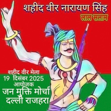 जन मुक्ति मोर्चा छत्तीसगढ़ के कृषि कार्यालय दल्ली राजहरा जिला बालोद छत्तीसगढ़ के मैदान पर दिनांक 19/12/25 दिन शुक्रवार को जन मुक्ति मोर्चा छत्तीसगढ़ द्वारा छत्तीसगढ़ के प्रथम स्वतंत्रता संग्राम सेनानी शहीद वीर नारायण सिंह के शहादत दिवस पर भव्य वीर मेला का आयोजन किया जायेगा।