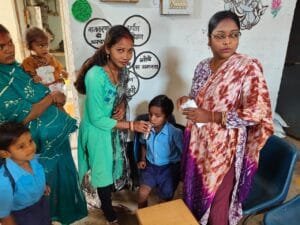 दल्ली राजहरा वार्ड नंबर 2 के आंगनवाड़ी में फाइलेरिया रोग ( हाथी पांव ) से बचाव के लिए एल्बजोल की दवाई खिलाई गई l