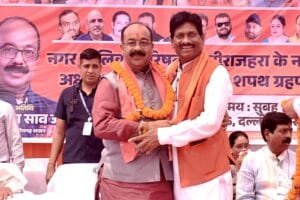 दल्ली राजहरा 15 फरवरी को नगर पालिका चुनाव का परिणाम आते ही खुशी का लहर दौड़ गया क्योंकि दल्ली राजहरा नगर पालिका के 25 साल के इतिहास में पहली बार भारतीय जनता पार्टी की सरकार बनी है l जहां तोरण लाल साहू भारी बहुमत से विजय हुए l आज बहुत प्रतिशत शपथ ग्रहण समारोह 6 नंबर स्कूल के मैदान में माननीय उपमुख्यमंत्री अरुण साव जी के मुख्य अतिथि में संपन्न हुआ l