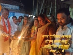 नगर पालिका अध्यक्ष तोरण लाल साहू भाजपा नेत्री किरण सिन्हा नवीन साहू के द्वारा भारत माता की आरती की गई l