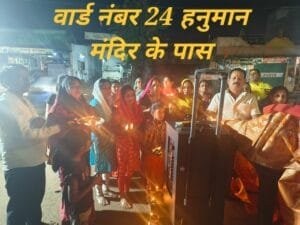 वार्ड नंबर 23 में पूर्व नगर पालिका अध्यक्ष पूरोबी वर्मा के नेतृत्व में आरती हुई l