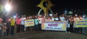 जम्मू कश्मीर के पहलगाम में पर्यटकों पर हुए आतंकवादी घटना और इस निर्मम हत्या के विरोध में मुस्लिम समाज दल्ली राजहरा द्वारा स्थानीय जैन भवन चौक में कैंडल मार्च निकाल कर आतंकवादियों को फांसी की सजा की मांग की गई । इस दौरान मुस्लिम समाज के युवाओं ने अपने वक्तव्य में कहा की भारत में हिंदू मुस्लिम की एकता को बिगड़ने की जो आतंकी साजिश की गई उसका देश भर के लोगों ने मुंहतोड़ जवाब दिया है साथ ही यह भी संदेश दिया कि हिंदुस्तान के हिंदू और मुस्लिम एक थे और एक रहेंगे।