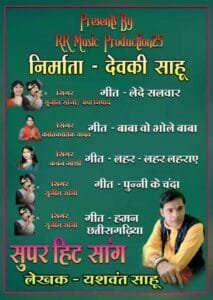 आने वाले समय में महतारी के नाम से फिल्म बन रहा है उसमें इनका गीत आयेगा जिसके लिए लगभग 2 से 3 माह का समय है l उन्होंने बताया कि मैं सिर्फ यूट्यूब में एल्बम बनाता हूं l मंचीय कार्यक्रम नहीं करता हूं l यूट्यूब में “आरआर म्यूजिक प्रोडक्शन 25” पर उनका गाना आता है जिनका निर्माता है उनकी पत्नी देवकी साहू l