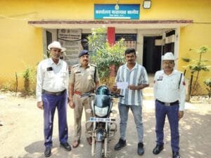 वाहन क्रमांक C G 07 C C 6765 के चालक गौकरण प्रसाद उर्फ शिवा पिता मदन लाल ठाकुर उम्र 25 वर्ष साकिन शिवनाथ नगर क्वार्टर नंबर 07 अंजोरा जिला दुर्ग (छ.ग.) के द्वारा तांदुला जलाशय में प्रतिबंधित क्षेत्र में वाहन ले जाकर विडियों बनाने हेतु खतरनाक तरीके से स्टंट कर उसका वीडियों बनाकर अपने इंस्टाग्राम पर अपलोड़ किया गया , जिसका वीडियो वायरल हुआ था। उपरोक्त वाहन चालक को आज दिनांक 05.05.2025 को यातायात पुलिस बालोद द्वारा बिना लायसेंस के वाहन चलाने एवं खतरनाक ढंग से वाहन चलाने पर 3000 रू. समन शुल्क का जुर्माना वसूल किया गया है l साथ ही वाहन चालक को हिदायत दिया गया की ऐसा कोई भी स्टंट सड़क या अन्य जगहों पर न करें हमेशा यातायात नियमों का पालन कर वाहन चलाएं।
