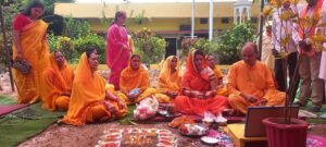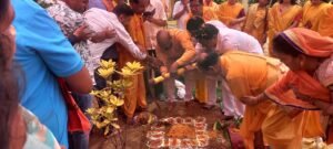 कार्यक्रम में सर्वप्रथम वेद माता गायत्री और परम पूज्य गुरुदेव श्री राम शर्मा की पूजा अर्चना किया गया l उसके बाद अतिथियों के द्वारा प्रस्तावित मंदिर स्थल पर जाकर वेद मत्रों के साथ पूरे विधि विधान से भूमि पूजन की गई जिसमें यजमान की भूमिका गायत्री मंदिर के मुख्य ट्रस्टी हूल्लास कुमार देवांगन ने सपत्नीक निभाया l