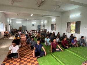 भगवान श्री कृष्ण गीता में कहा है कि योग: कर्मसु कौशलम् योग के माध्यम से अपने जीवन के कर्म में कौशल को धारण करते हैं जिससे आर्थिक रूप से भी संपन्न बनते हैं। योग के अंतर्गत विभिन्न आसन ताड़ासन, कटि चक्रासन ,ग्रिवा चालान, पाद संचालन, स्थितकोणासन, मंडूकासन, वृक्षासन तथा प्राणायाम के अंतर्गत भस्त्रिका, अनुलोम विलोम, कपालभाति, भ्रामरी आदि प्राणायाम का अभ्यास कराया गया ।