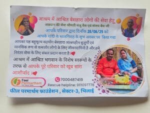 पूर्व जनपद सदस्य संजय बैस ने अपनी शादी की वर्षगांठ पिल फाउंडेशन भिलाई में निराश्रित पुरुषों एवं महिलाओं के साथ मनाया l