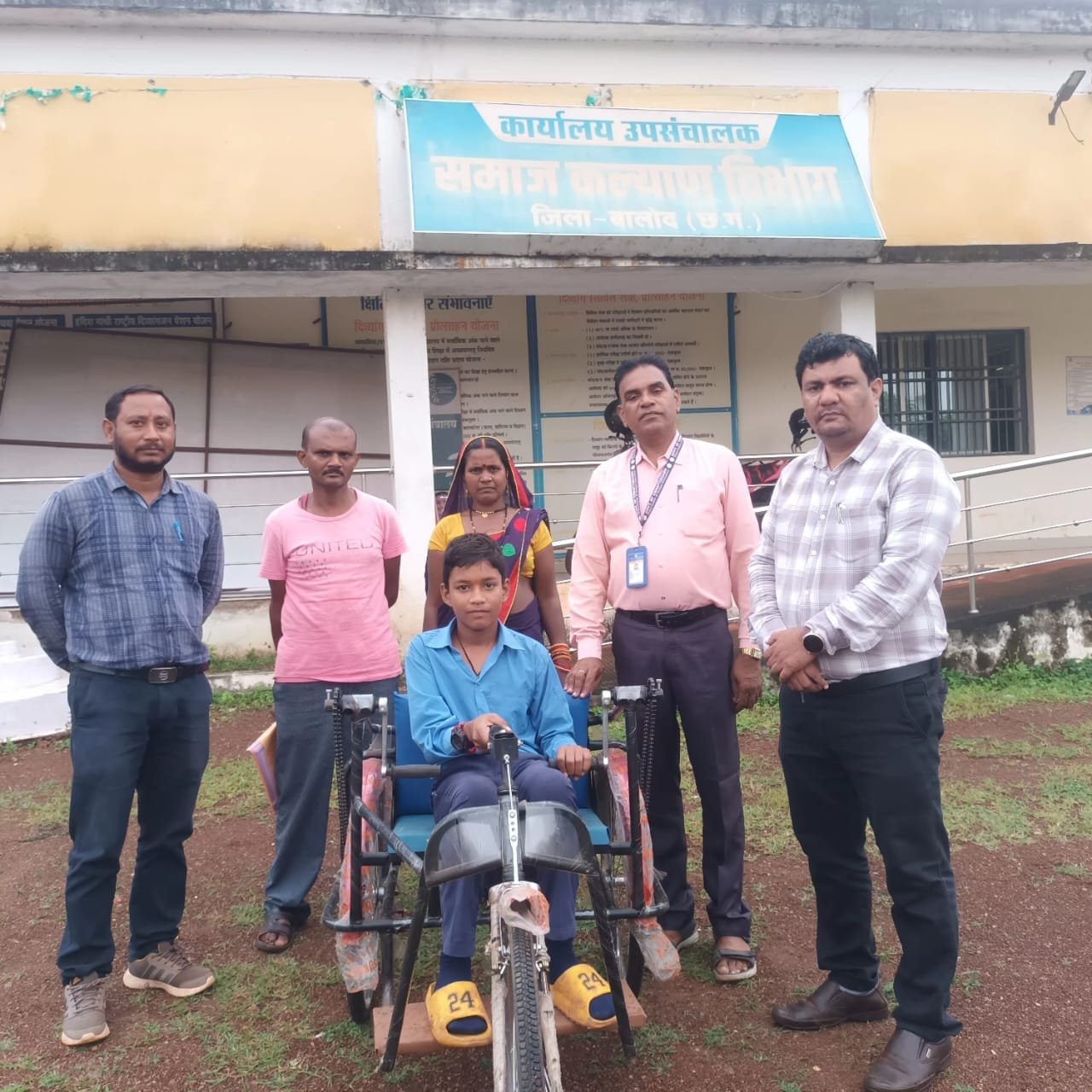 भारतीय रेडक्रास सोसायटी जिला शाखा बालोद द्वारा आज दल्लीराजहरा निवासी गजानन साहू के सुपुत्र रितेश कुमार साहू जिनको 40% विकलांगता होने के कारण चलने फिरने में कठिनाई हो रही थी l