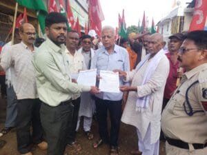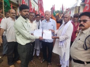 हिंदुस्तान स्टील इंप्लाइज यूनियन ( सीटू) और छत्तीसगढ़ माइंस श्रमिक संघ (सी एम यस यस ) के द्वारा कल जैन भवन चौक में आम सभा कर 10 सूत्री मांगों को लेकर महामहिम राष्ट्रपति महोदया जी, भारत सरकार के नाम अनुविभागीय दण्डाधिकारी (राजस्व) दल्ली राजहरा को देश व प्रदेश भर के किसानों पर सरकार द्वारा थोपे गये जन-विरोधी नीतियों व काले कानूनों जैसे विभिन्न ज्वलंत समस्याओं पर गम्भीरता से विचार कर किसानों के हित में हल निकालनें के सम्बंध में ज्ञापन सौंपा है l