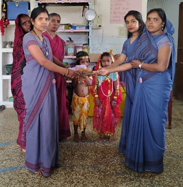 सभी बालक और बच्चे बालिकाएं कृष्ण और राधा बाल सखा के रूप में कपड़े पहन कर आए थे l जहां कृष्ण बनी चेतना निषाद तथा राधा कुमकुम निर्मलकर बनी हुई थी l कृष्ण के बाल सखाओं में लिलेश , हेयंश , तनुजा , ट्वींकल ,सेजल , डालिस , याशिका , खुशी , वेद एवं लविस रहे बच्चों के द्वारा भक्ति गीत पर नृत्य की प्रस्तुति दिया गया l कार्यक्रम में लक्ष्मी जगनायक , बिजेश्वरी कुंजाम , मीना उइके , केशरी माहला , भगवन्तीन निर्मलकर उपस्थित रहे l