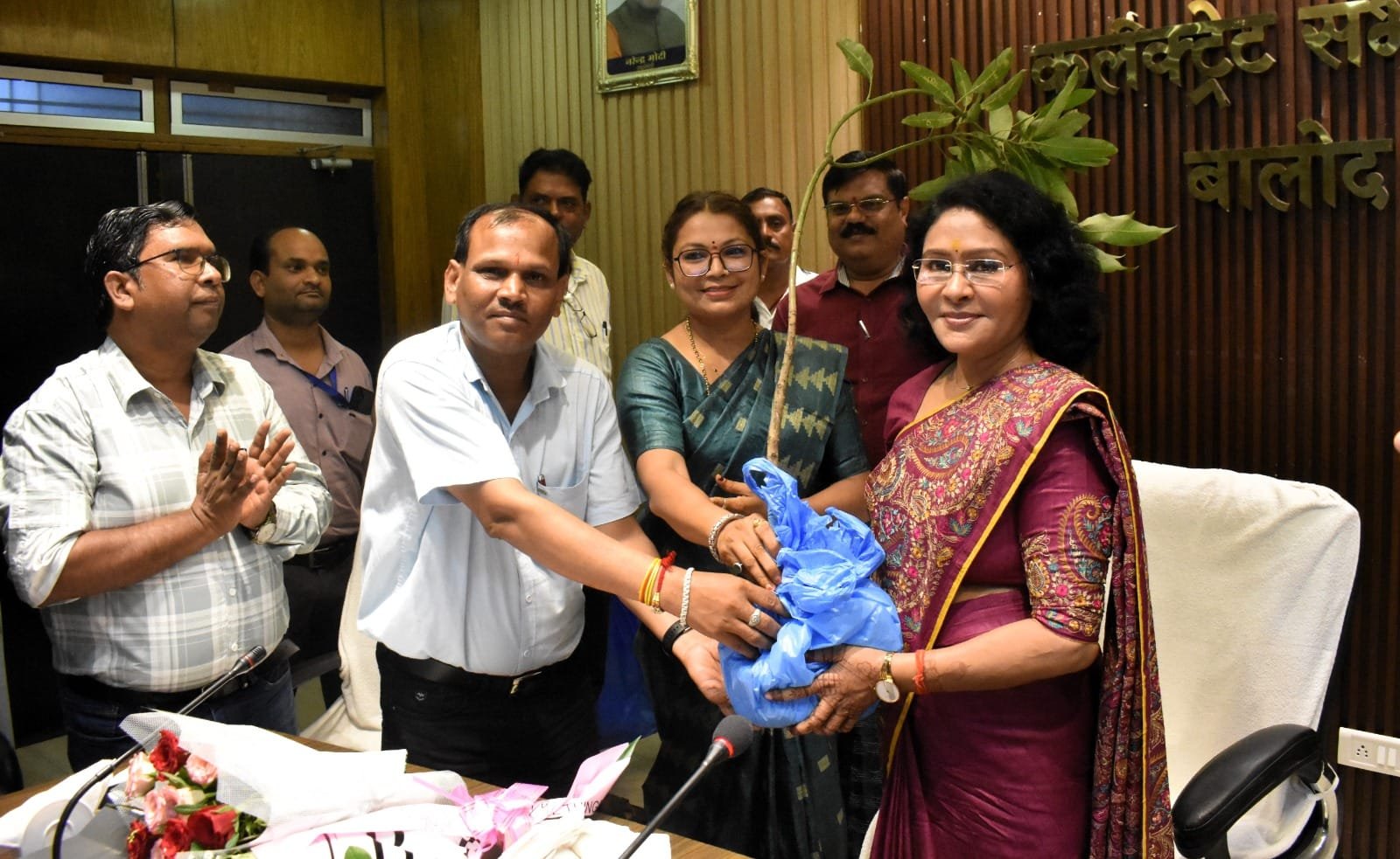 इस अवसर पर संयुक्त जिला कार्यालय सभाकक्ष में उपस्थित अधिकारी- कर्मचारियों ने भी इन दोनों शिक्षकों के कार्यकुशलता की सराहना करते हुए उन्हें बधाई एवं शुभकामनाएं प्रेषित की। इस दौरान राज्यपाल पुरस्कार हेतु चयनित दोनों शिक्षकों के द्वारा कलेक्टर श्रीमती दिव्या उमेश मिश्रा को उनके जन्मदिन के अवसर पर पौधा भेंटकर उन्हें बधाई एवं शुभकामनाएं दी। इस मौके पर जिला पंचायत के मुख्य कार्यपालन अधिकारी श्री सुनील चंद्रवंशी, अपर कलेक्टर श्री चंद्रकांत कौशिक, श्री अजय किशोर लकरा एवं श्री नूतन कंवर के अलावा डीएमसी श्री अनुराग त्रिवेदी सहित अन्य अधिकारीगण उपस्थित थे।