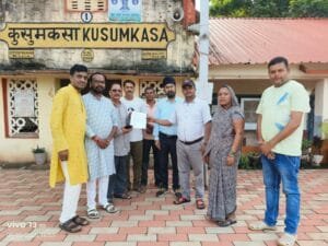 दल्ली राजहरा बुधवार 3 सितंबर 2025 भोज राम साहू 98937 65541संजय बैस और डॉ भूपेंद्र मिश्रा( सलाहकार स्टेशन उपभोक्ता कुसुमकसा) ने मंडल वाणिज्य प्रबंधक (रायपुर मंडल) को रेल्वे स्टेशन कुसुमकसा में सलाहकार समिति के सदस्य व रेल्वे अधिकारी ,स्टेशन मास्टर एवं जन प्रतिनिधियों के साथ चर्चा करने के पश्चात् 7 सूत्रीय मांग को लेकर पत्र सौंपा lजिसमें लिखा है कि हमारे स्टेशन पर यात्रियों की सुविधाओं को देखते हुए निम्नलिखित कार्यों का शीघ्र पूर्ण होना अत्यंत आवश्यक है।????1. कुसुमकसा स्टेशन में यात्रियों के लिए रिजर्वेशन काउंटर प्रारंभ किया जाय।????2. रेल्वे यात्रियों को कीचड़ से लथपथ रोड़ से जाना पड़ता है, रेल्वे यात्रियों के लिए पहुंच मार्ग का सीमेंटीकरण किया जाये। ????3. 2nd प्लेटफार्म स्टेशन पर बनाया जाय यात्रियों को चढ़ने और उतरने की दूसरा पटरी में आने से परेशानी होता है।????4. गांव से रेल्वे पहुंच मार्ग तक स्ट्रीट लाइट लगाया जाये।????5. कुसुमकसा रेल्वे फाटक का सड़क जर्जर और गड्ढे हो गए जिससे राहगीरो को बहुत समस्या का सामना करना पड़ता है, इस शीघ्र बनाया जाये।????6. सप्ताह में तीन दिन चलने वाली पैसेंजर ट्रेन को पूरा सप्ताह भर चलाया जाये।????7. यात्री ट्रेन में बोगी बढ़ाया जाए l Spread the lovePost navigationलौह नगरी दल्ली राजहरा के गणेश उत्सव कैंप नंबर वन का दसवां वर्ष साहित्यकार बंगाली प्रसाद ताम्रकार जयंती पर पारकर और प्रखर को मिला ‘ हस्ताक्षर साहित्य सम्मान 2025 ‘
