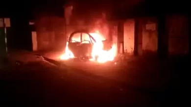 हाईवा से टकराकर कार में लगी आग, कारोबारी झुलसा: होटल बंद कर लौट रहा था, रास्ते में हुआ हादसा; फिर धू-धूकर जलने लगी गाड़ी