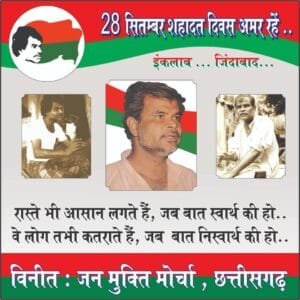 जन मुक्ति मोर्चा छत्तीसगढ़ ने मनाया शहादत का 34 वां वर्ष